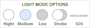 The S.O.S. is the international Morse code rescue signal and can be used as a life-saving signal in case of an emergency. When the S.O.S light mode is activated the light beam flashes fast three times, slowly three times and then quickly three times. The light flashing frequency is standard and the S.O.S light mode repeats itself when the light cycle completes.